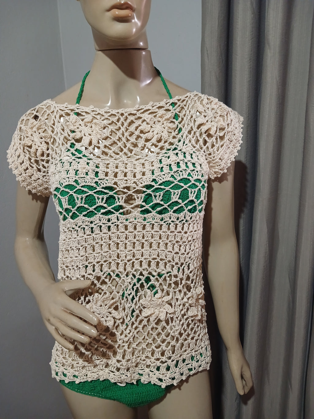 Blusa de croche feita em crochê com fio de algodão tamanho p m
